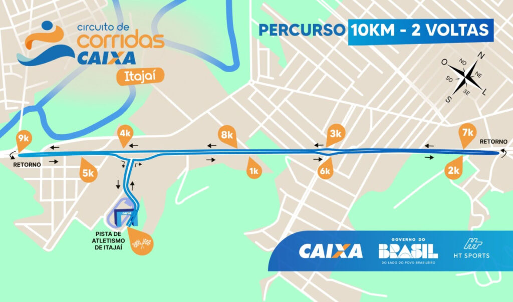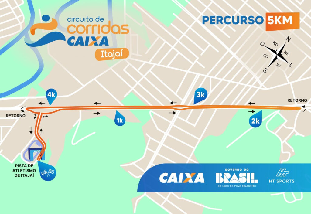 1.1. O Circuito de Corridas CAIXA – Etapa ITAJAÍ, a ser realizada na Rua Vereador José Carlos Mendonça – Estacionamento da Pista de Atletismo da Prefeitura, doravante denominado EVENTO, será realizada no dia 07 de Dezembro de 2025, na cidade de ITAJAÍ, nas distâncias de 5 km (corrida e caminhada) e 10 km (corrida), com participação de PESSOAS DE AMBOS OS SEXOS devidamente inscritos, doravante denominados ATLETAS, com qualquer condição climática.