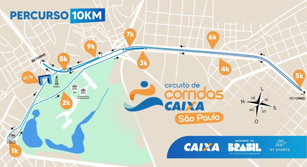 1.1. O Circuito de Corridas CAIXA – Etapa SÃO PAULO, a ser realizado no Obelisco do Ibirapuera, doravante denominado EVENTO, será realizada no dia 16 de Novembro de 2025, na cidade de SÃO PAULO, nas distâncias de 5km (corrida e caminhada) e 10km (corrida), com participação de PESSOAS DE AMBOS OS SEXOS devidamente inscritos, doravante denominados ATLETAS, com qualquer condição climática.